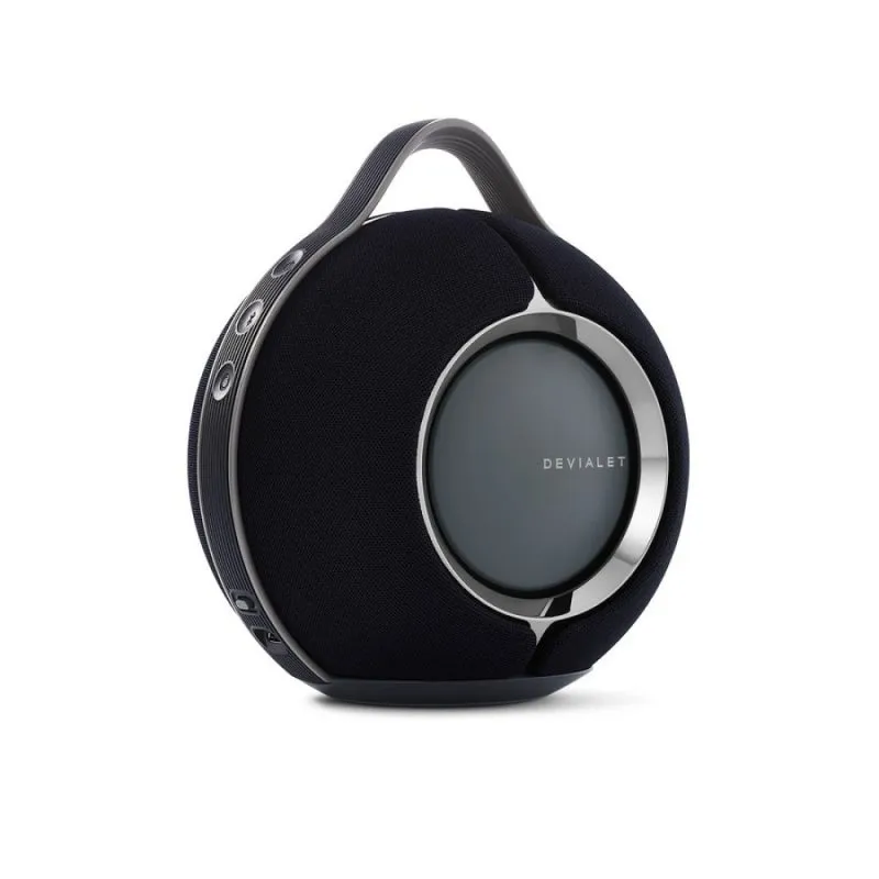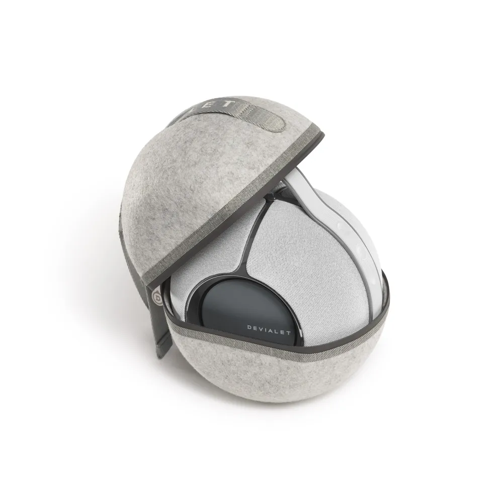 L’identità estetica Devialet si fonde con la necessità di robustezza portatile. La forma sferica compatta, iconica e acusticamente vantaggiosa, è avvolta da un tessuto intrecciato di lusso che riveste un resistente esoscheletro. I woofer push-push sono visibili e contribuiscono all’immagine scenica. Una maniglia integrata ne facilita il trasporto, mentre la certificazione IPX4 garantisce resistenza agli spruzzi d’acqua, rendendolo adatto a contesti domestici e outdoor. Con un peso di 2.3 kg e dimensioni contenute (176 x 193 x 139 mm), Devialet Mania è un oggetto di design che si integra con disinvoltura in qualsiasi ambiente, dalla cucina al terrazzo, senza sacrificare l’integrità costruttiva. Nella confezione è inclusa una borsa da trasporto, a testimonianza della sua natura itinerante.